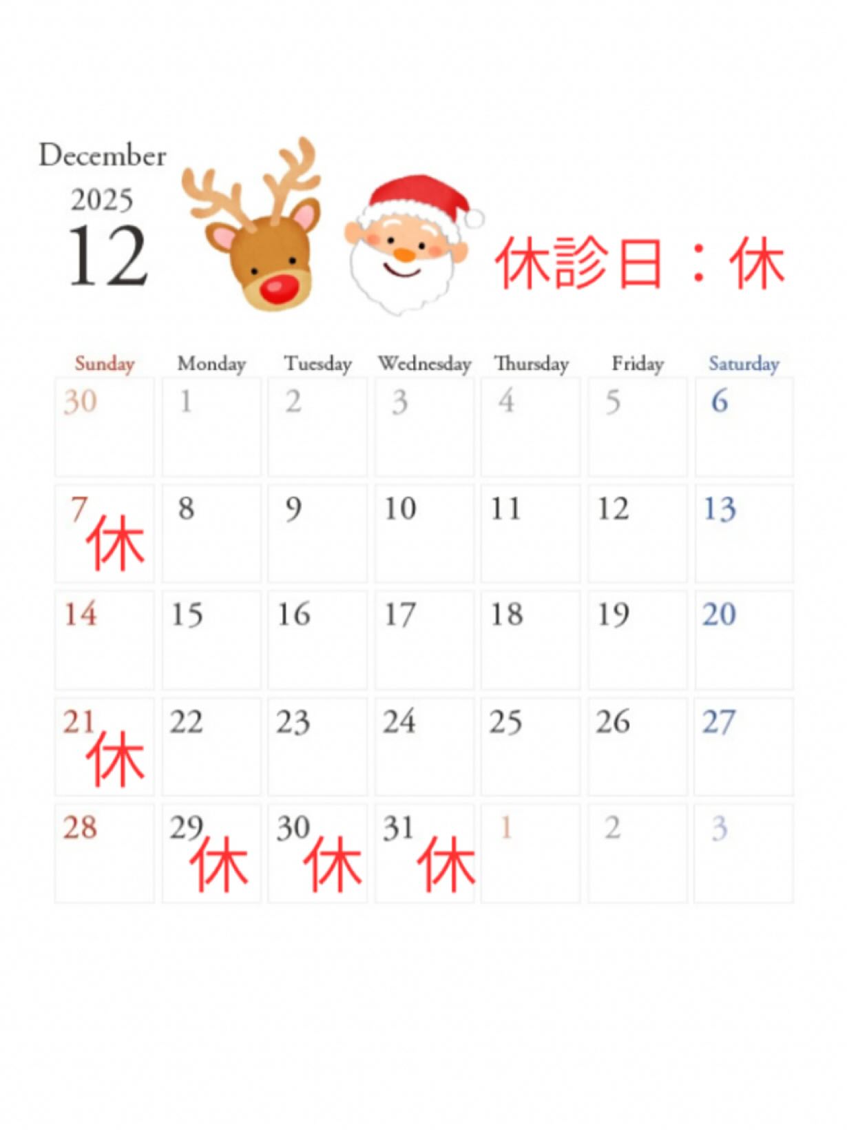 名古屋むらもと内視鏡クリニックです💁🏻♀️朝晩の冷え込みが厳しさを増してきましたが、皆様いかがお過ごしでしょうか🤲12月の診療のご案内です🎅❄️【終日休診】第1・3日曜日、29,30,31日また、1..