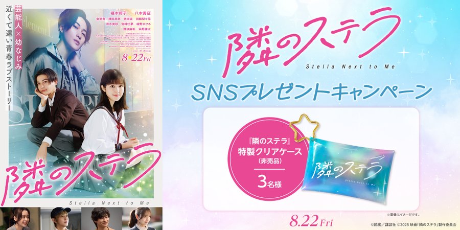 ☆𓂃𝟖/𝟐𝟐(金)公開*¨『#隣のステラ』¨*SNSプレゼントキャンペーン☆ˊ˗抽選でオリジナルグッズをプレゼント☆ˊ˗応募方法❶@109_nagoyaをフォロー❷【#109シネマズで隣のステラ】を付..