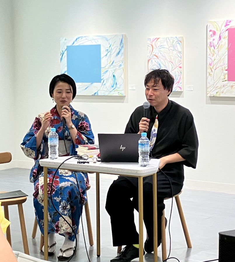 東京画廊山下豊津キュレーショングループ展【野に咲く花のように】歌人の野口あや子さんとアートテラー・とに〜さんによるトークセッション会場では作品と共に野口さんの短歌が添えられています17時からはお飲み物..