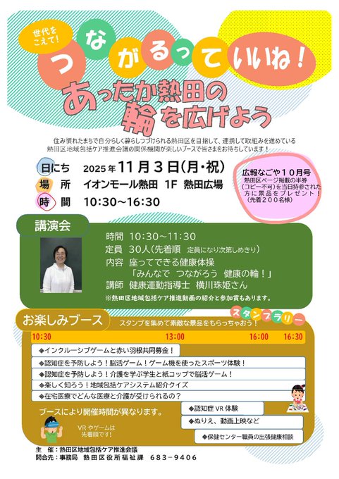 【本日11/3開催イベント「つながるっていいね!熱田の輪を広げよう」inイオンモール熱田10:30~16:30熱田広場!】講演会・体験ブース・スタンプラリーします「つながるっていいね!」を体感しに来ま..