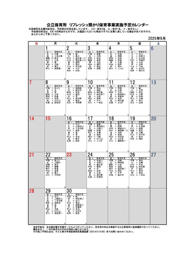 公立保育所#リフレッシュ預かり保育9月分の空き枠申し込み・キャンセル待ち本日8/15(金)10:00~受付けますお申し込みはご希望の公立保育所にお電話を受付枠は市公式ウェブサイトでご確認ください詳しく..