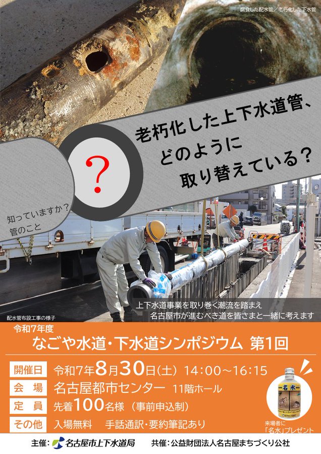 将来にわたり持続可能な上下水道事業とするために解決すべき課題について、市民の皆さまとともに考え、事業のあり方に共感いただくきっかけづくりの場とすることを目的に、「なごや水道・下水道シンポジウム」を開催..