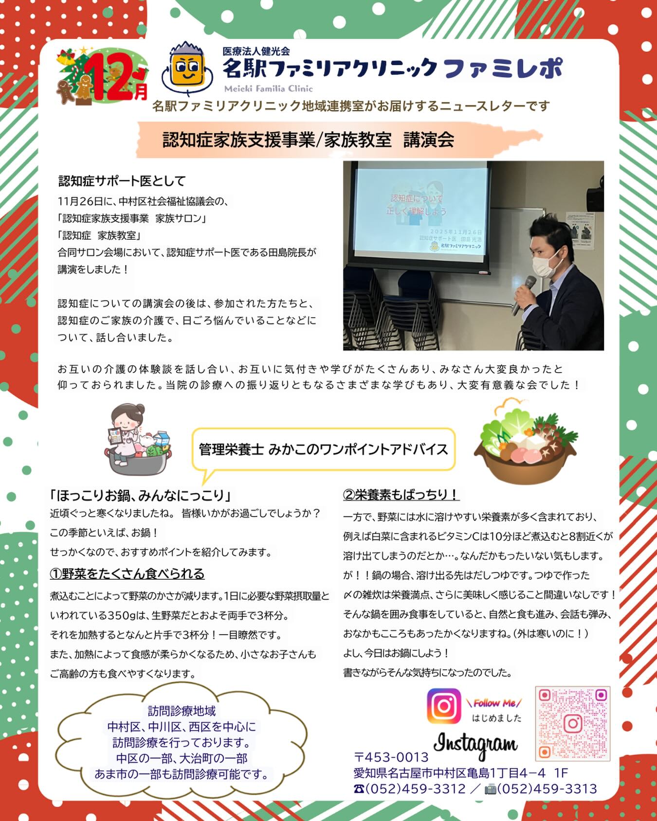 名駅ファミリアクリニックです!✨【📢12月のファミレポ】寒さが本格的になり、冬まっしぐらの季節になりま..
