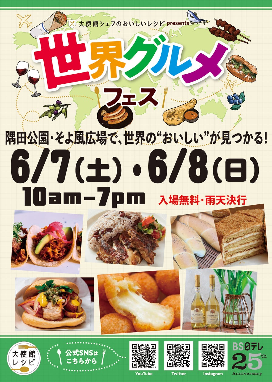 株式会社BS日本のプレスリリース(2025年5月28日12時00分)出店者・出演者発表「大使館シェフのおいしいレシピ」presents世界グルメフェス 6/7(土)8(日)墨田区隅田公園そよ風ひろば