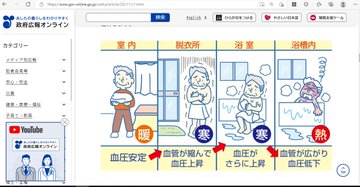 この時期,注意したい「ヒートショック」浴室から寒い脱衣所に移動する際の急激な温度差は,血圧が大きく変化し体に負荷がかかります。場合によっては脳梗塞や心筋梗塞などを引き起こし命に関わることもあります。急..