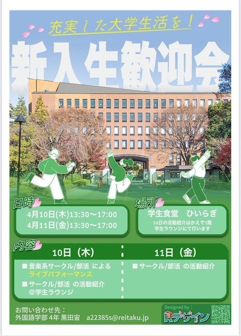 サークルどうしよう?と思ったら…\新入生歓迎会へGO!/4/10・1113:30〜学生食堂ひいらぎ、学生ラウンジ(10日のみ)ライブパフォーマンスも#春から麗大#新歓#サークル選び