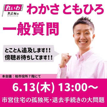 【6/13一般質問します】今回わたしは、なんとトップバッターになりました!!きっと意味があって1番目になったと思うので、最初からアクセル全開でいきますれいわ新選組柏勝手連代表の江口ひろみさん、副代表の..