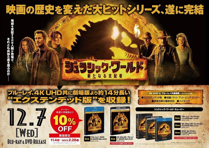 映画の歴史を変えた大ヒットシリーズがついに完結!!映画『#ジュラシック・ワールド/#新たなる支配者』本日発売!ブルーレイ+DVDのみ、2023/2/28(火)までの期間限定スペシャルプライス10%OF..