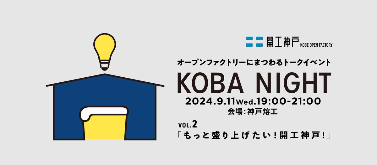 ---町工場を舞台にしたトークイベント「KOBANIGHT」---11月に3回目の開催となる「開工神戸」その開催前にオープンファクトリーにまつわるトークイベントを実施日時:9/11(水)19時~21時..