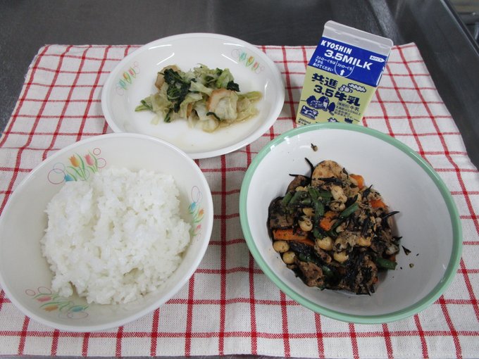 10月3日(木)の神戸市中学校給食の献立(親子調理方式)ごはん京風うま煮煮びたし給食の献立等の産地情報はhttps://kobe-gk.jp/disclosure/production_area/……..