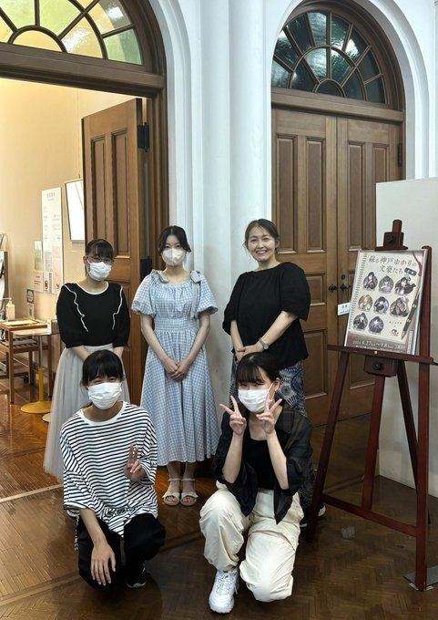 27日(火)、武庫川女子大学文学部日本語日本文学科の三品理絵教授とゼミ生(3回生)4名が来館し、熱心に展示を見て回っていました。#武庫女#三品理絵