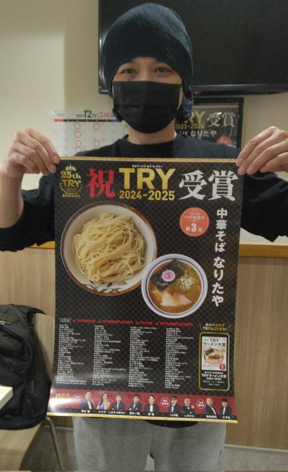 TRYラーメン大賞受賞のポスターが届きましたとてもかっこいいです額縁に入れて店内に飾ります!TRY編集部様、素晴らしいポスターをありがとうございます
