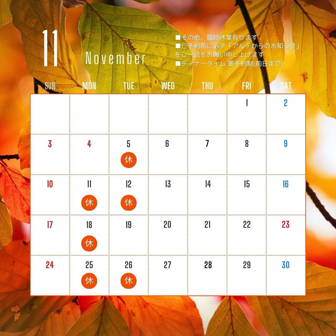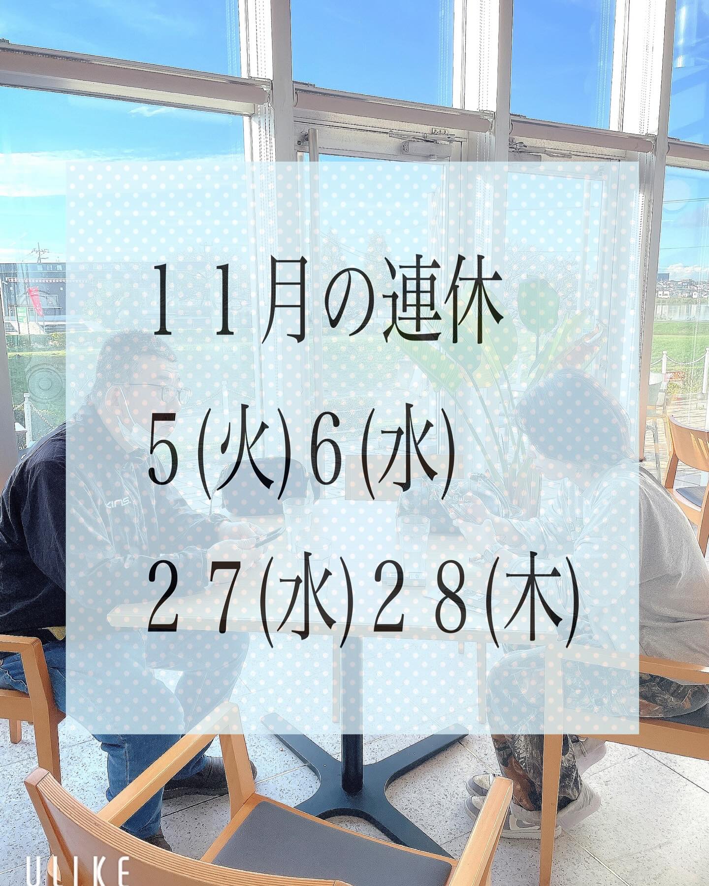 11月の連休のお知らせ🎃✨☆5(火)6(水)☆27(水)28(木)連休させて頂きます🍂