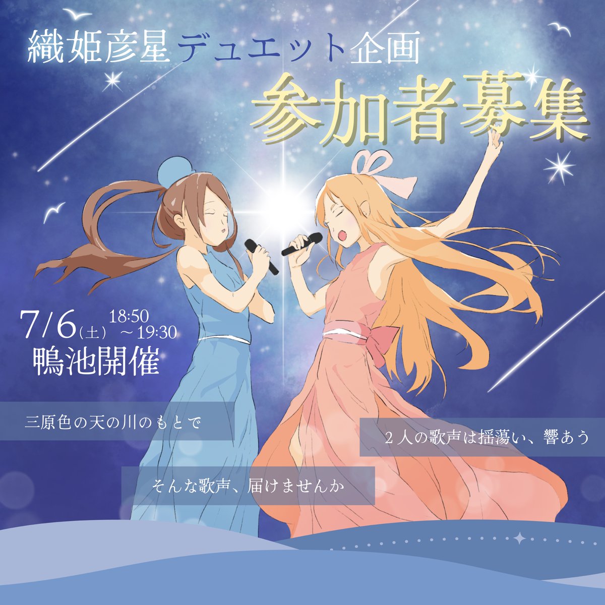 [企画情報解禁 第一弾]今年は花火の打ち揚げ前企画として「織姫彦星デュエット企画」を実施します🎆本企画では七夕にちなんで織姫と彦星の二人一組で出演していただき、花火が打ち揚がる前の30分間デュエットで..