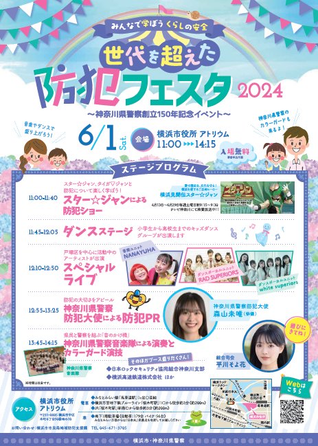 【防犯フェスタの開催①】 6月1日午前11時から,横浜市役所アトリウムにおいて,防犯フェスタを開催します。 当日は,タレントの「#平川そよ花」さんに総合司会を務めていただき,俳優の「#森山未唯」さんを..