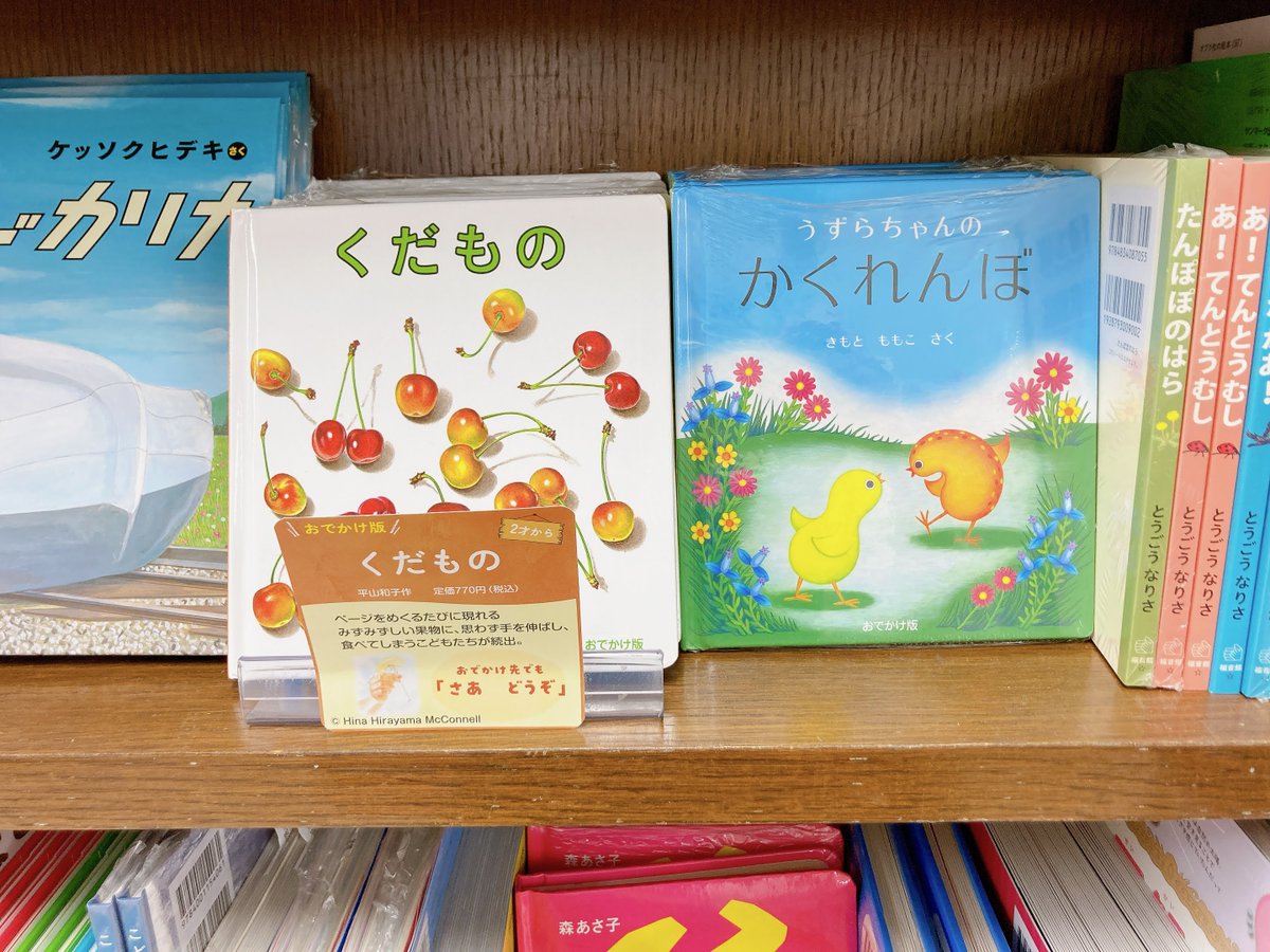 【8F児童書】『くだものおでかけ版』『うずらちゃんのかくれんぼおでかけ版』(福音館書店)大人気の絵本がどこでも気軽にもっていけるおでかけサイズになって登場!ただいま児童話題書の棚にて展開しております。..