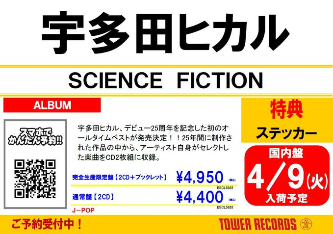 【#宇多田ヒカル】 /ベストアルバム『SCIENCEFICTION』ご予約受付中✨\完全生産限定盤および通常盤初回仕様には夏に開催される6年ぶりの全国ツアーチケット特別受付シリアルコードを封入!!!🎁..