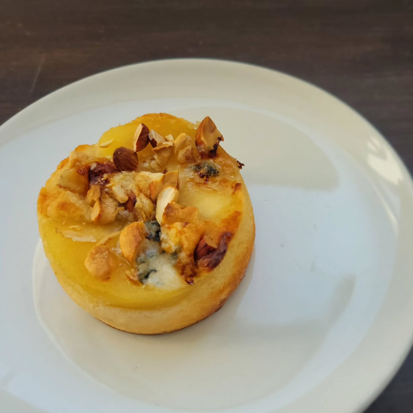 .りんご🍎の新作パン始まります🙌サックリ歯切れの良い生地にアーモンドクリームを塗りはちみつシロップで煮たりんご🍎ラム酒漬けイチジクゴルゴンゾーラチーズを乗せてザクザクナッツ🥜を散りばめましたセルクルで..