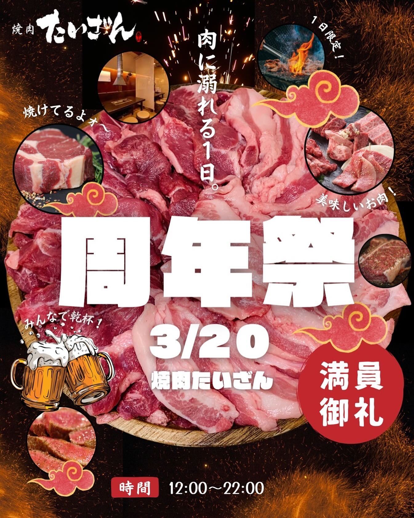 いつもありがとうございます😌焼肉たいざん🐮です3月20日(祝・水)は焼肉たいざん12回目のお誕生日🎉昨年に引..