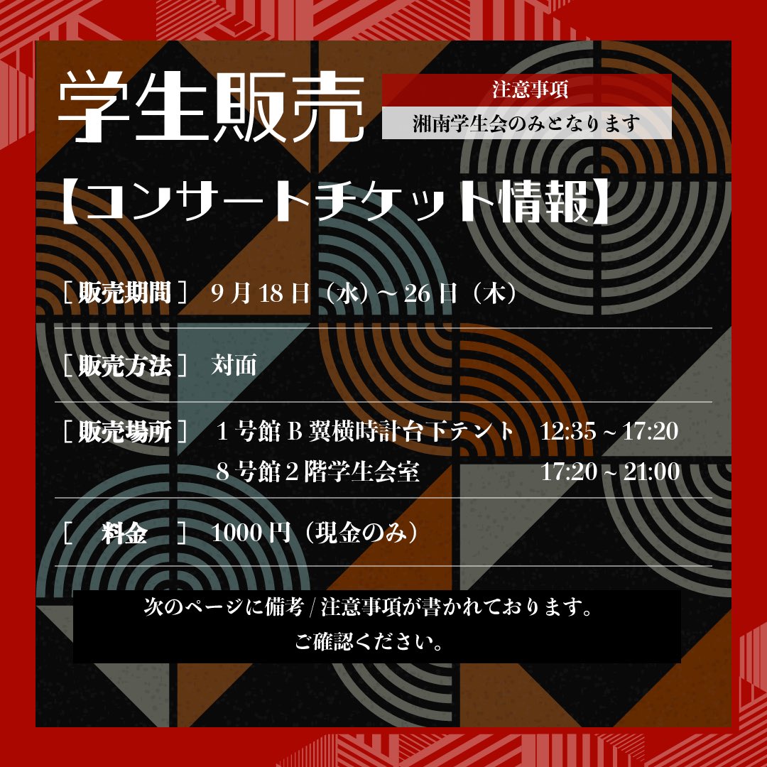 【コンサートチケット情報学生販売】 ※湘南学生会員のみ ・学生販売 9月18日(水) ~ 26日(木) 詳しくは建学祭ホームページをご覧ください。 (1/2) #Da_iCE #東海大学 #建学祭 #学祭