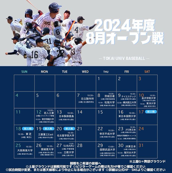 【8月オープン戦予定】8月のオープン戦予定をお知らせします。試合開始時間が未定の試合がありますので、決まり次第お知らせいたします。試合時間の変更、または悪天候等により中止になる場合がございます。詳細は..