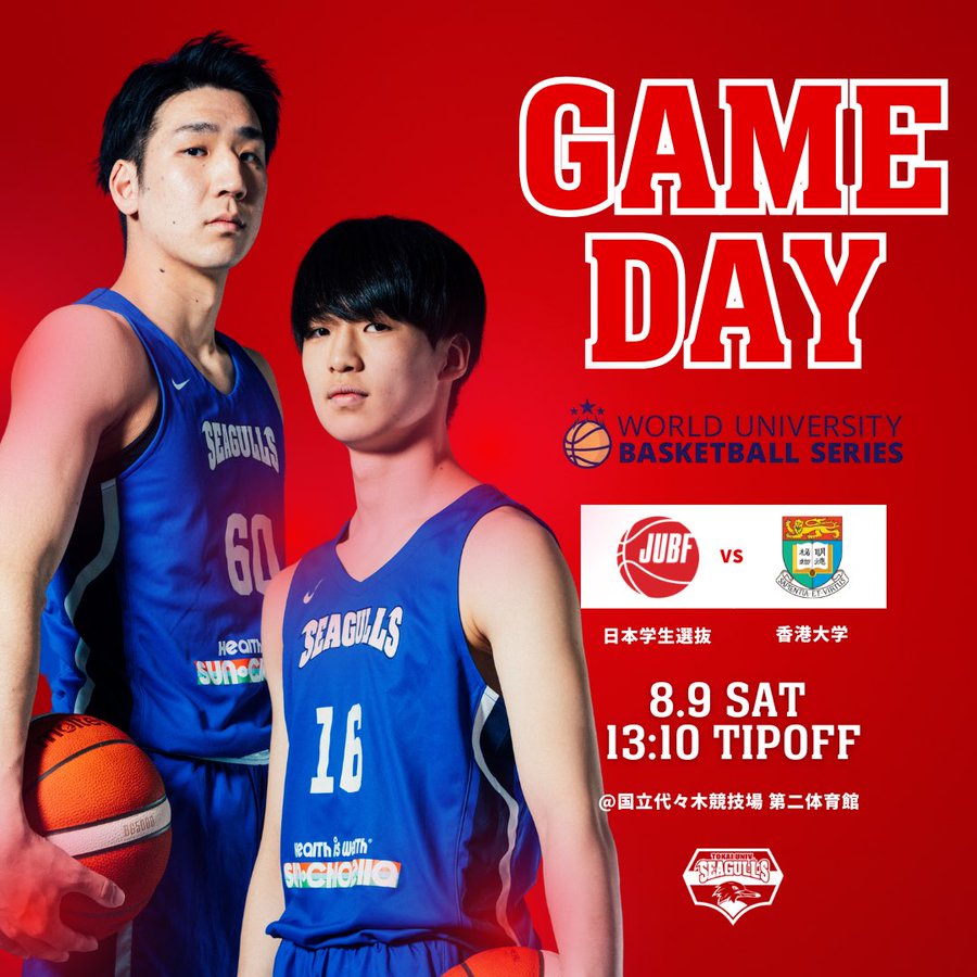 【試合情報】「WorldUniversityBasketballSeries(WUBS)」GAME28月9日(土)13:10日本学生選抜香港大学(香港)国立代々木競技場第二体育館本学から#赤間賢人、#..