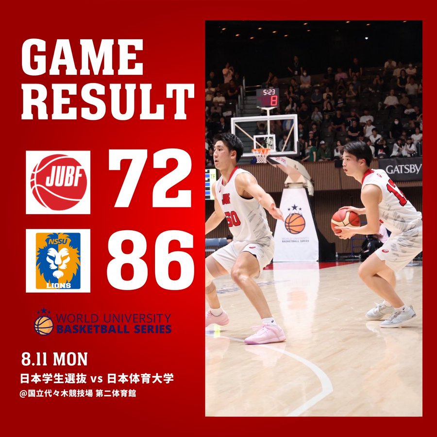 【試合結果】「WorldUniversityBasketballSeries2025(WUBS2025)」3位決定戦日本学生選抜72ー86日本体育大学本日の試合結果をもちまして、日本学生選抜は「Wor..