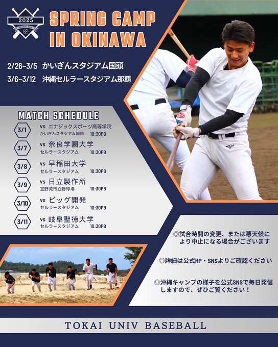 【2025沖縄キャンプ】2月26日より、沖縄にて春季キャンプを行います!SNSで毎日キャンプの様子を発信していきますので、ぜひご覧下さい◎詳細は公式HP・SNSよりご確認ください。#東海大学硬式野球部..