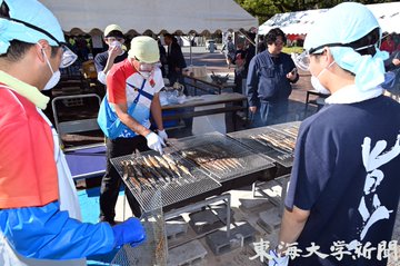 静岡キャンパスで北海道根室産のサンマを提供する「さんま祭り」を開催14年連続でサンマの水揚げ量日本一を誇る同市花咲港から直送された800尾のサンマを同市職員の皆さんが炭火で焼き、学生や近隣住民らに振る..