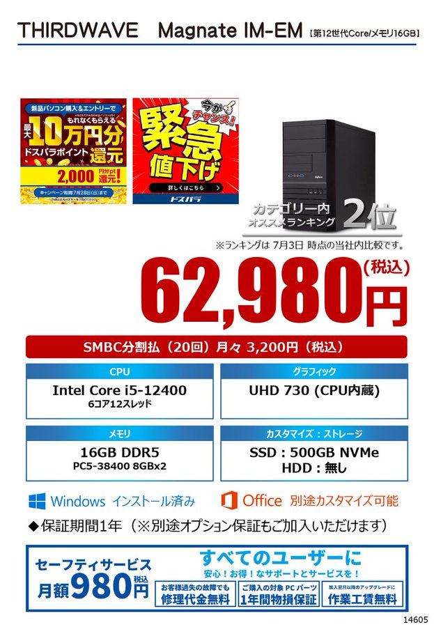 ビジネス向けデスクトップPC緊急値下げ対象のビジネス向けデスクトップパソコンも期間限定値下げ中ご注文、ご相談はぜひ小田原店までお越しください#ドスパラ#小田原