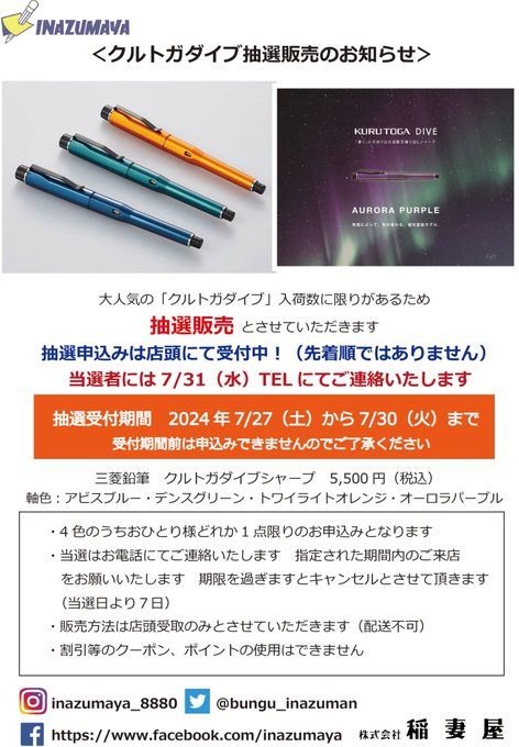 ◤クルトガダイブ抽選販売のお知らせ- ̗̀◥ 詳しくはコチラ #クルトガダイブ #抽選販売