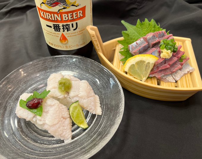 タワー棟3F『回転寿司北條』より夏メニューのご案内♪さっぱりとした梅肉とハモの相性抜群夏が旬とも言われているあじのタタキどちらも夏におすすめの商品です是非ご賞味ください【ハモ梅肉握り(2貫)】価格:¥..