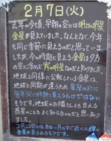 【#今日のウェルカムボード】今日は、#惑星についての豆知識です🪐2月22日には、月の近くに金星が見られるそうですよ✨本日もご来館をお待ちしております♪#相模大野図書館#明けの明星#宵の明星#金星🌟00..
