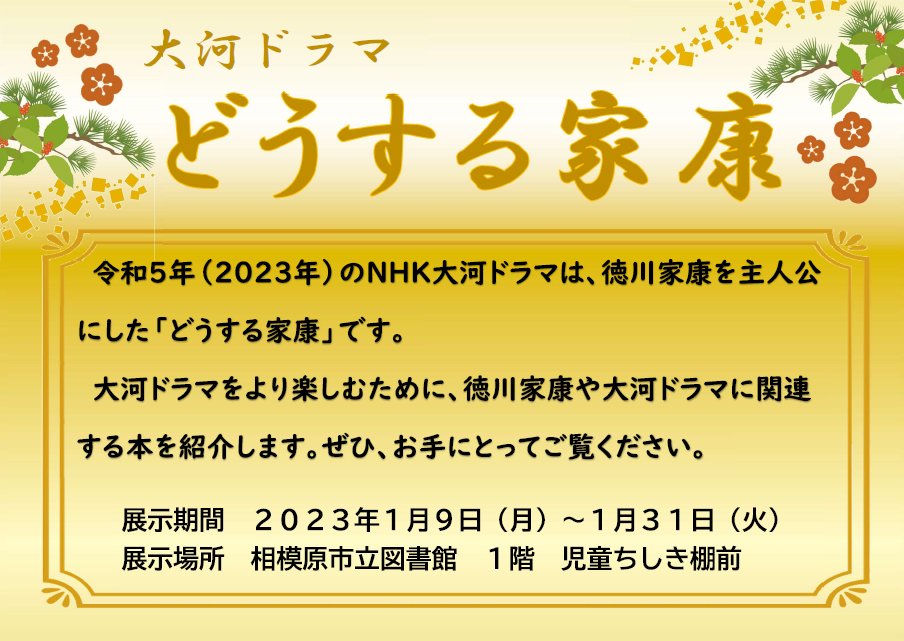 【特集展示「大河ドラマ どうする家康」ただいま実施中】 大河ドラマをより楽しむために、徳川家康や大河ドラマに関連する本を紹介します。ぜひ、お手にとってご覧ください。 #相模原市立図書館 #大河ドラマ #どうする家康 #徳川家康 #家康