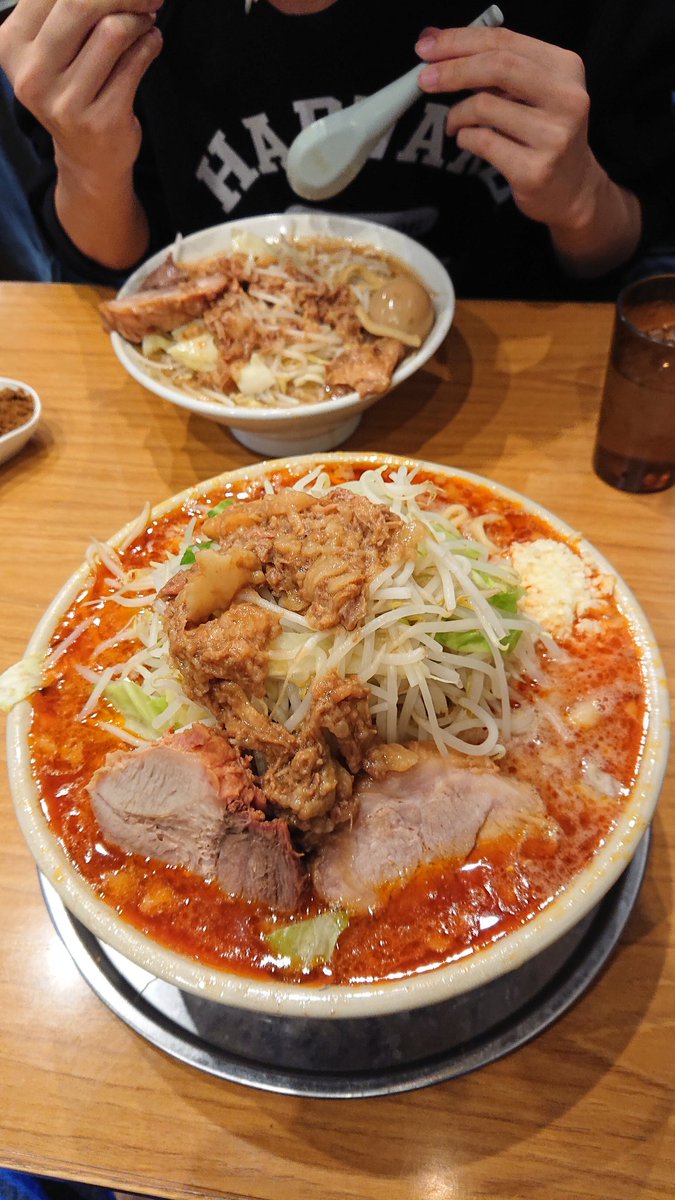 ラーメン二郎相模大野店『ラーメン(大盛り)』+ブタ増し×2+すき焼きタレ生たまご•••••••••••••••••••••••••••••••••••••#二郎#ラーメン二郎#相模大野二郎#ラーメン二..