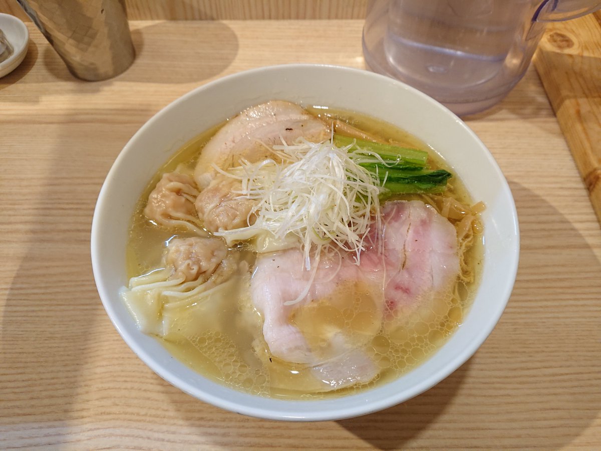 「中村麺三郎商店」淵野辺 海老ワンタン塩らぁ麺 麺大盛 塩角丸くじんわり染み渡る伸びやかな旨み💫そして鶏の香ばしさ😆しなやかで啜り心地のよい麺がスープに馴染んでめっちゃ旨い😋✨逸品の海老ワンタン、塩チャーシューもスープとの一体感が👍