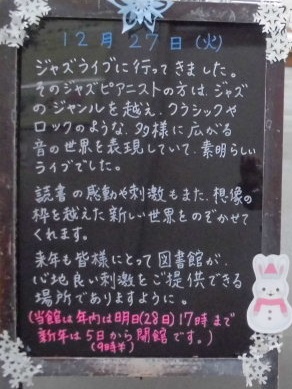 【#今日のウェルカムボード】年内の開館は、明日(12月28日)までです💡本日もご来館をお待ちしております☀️#相模大野図書館014