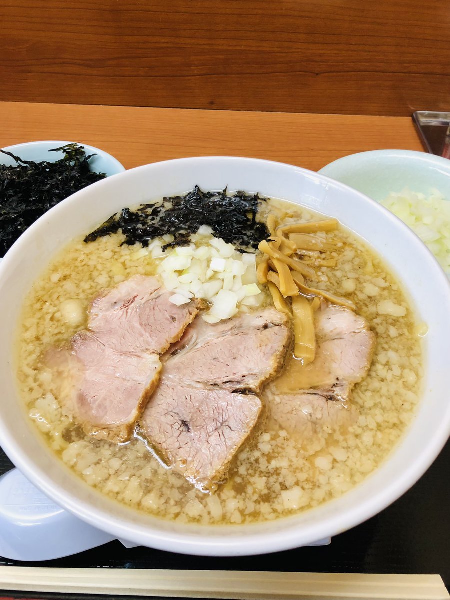 肉煮干し中華そば鈴木ラーメン店@相模大野・背脂煮干し+玉ねぎ+ばら海苔急遽❗️鈴ラーCHANCE⚡️ニボニボスープ🐟にたっぷり背脂🐷自家製のツルモチ極太麺がめちゃくちゃ旨い〜(´↑ω↑)ムヒョヒョ~イ..