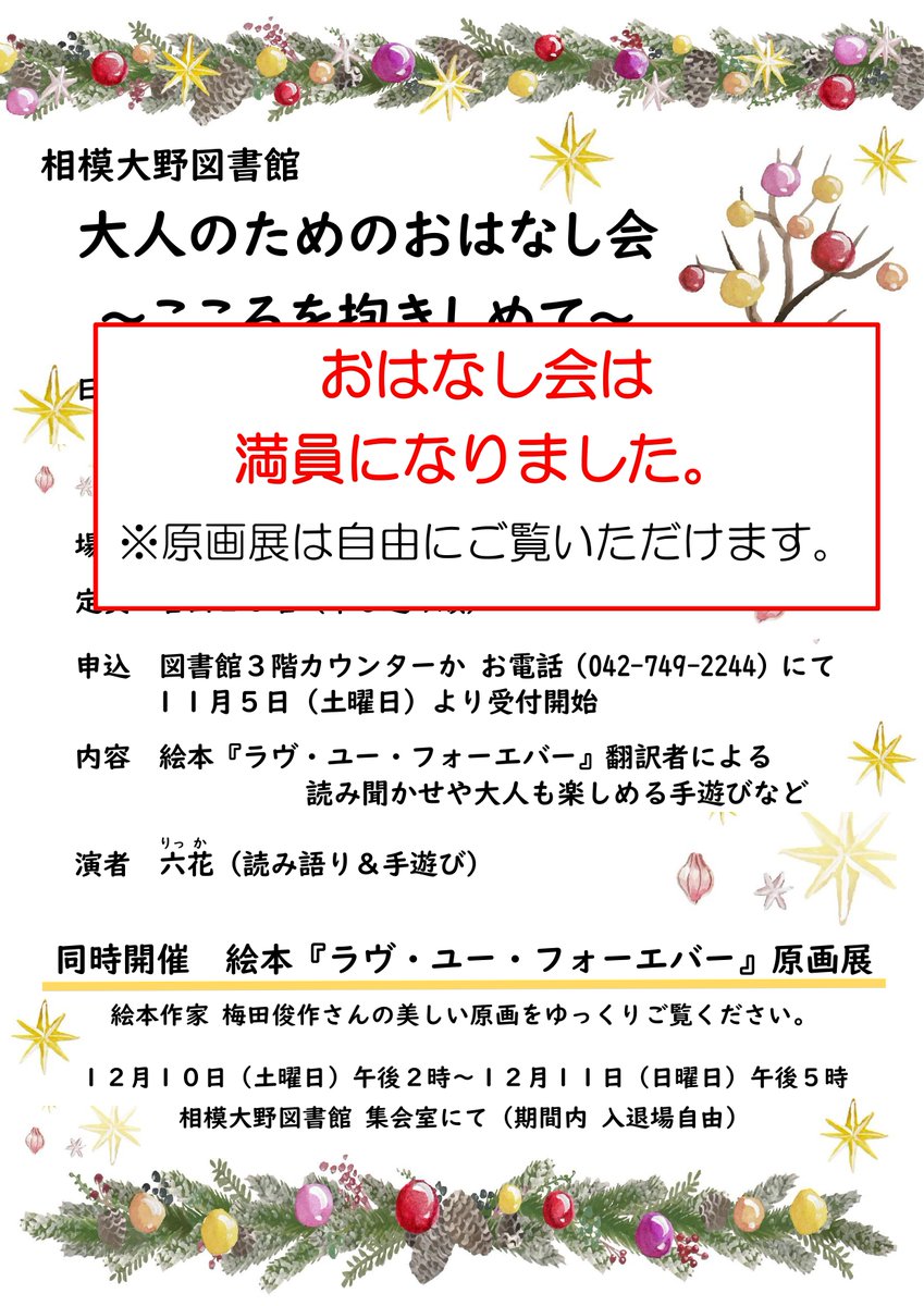 【満員御礼】相模大野図書館「大人のためのおはなし会」は定員となりました。たくさんのご応募ありがとうございました🍀原画展は当日、どなたでもご覧いただけますので、ぜひお越しください🎨www.lib.sag..