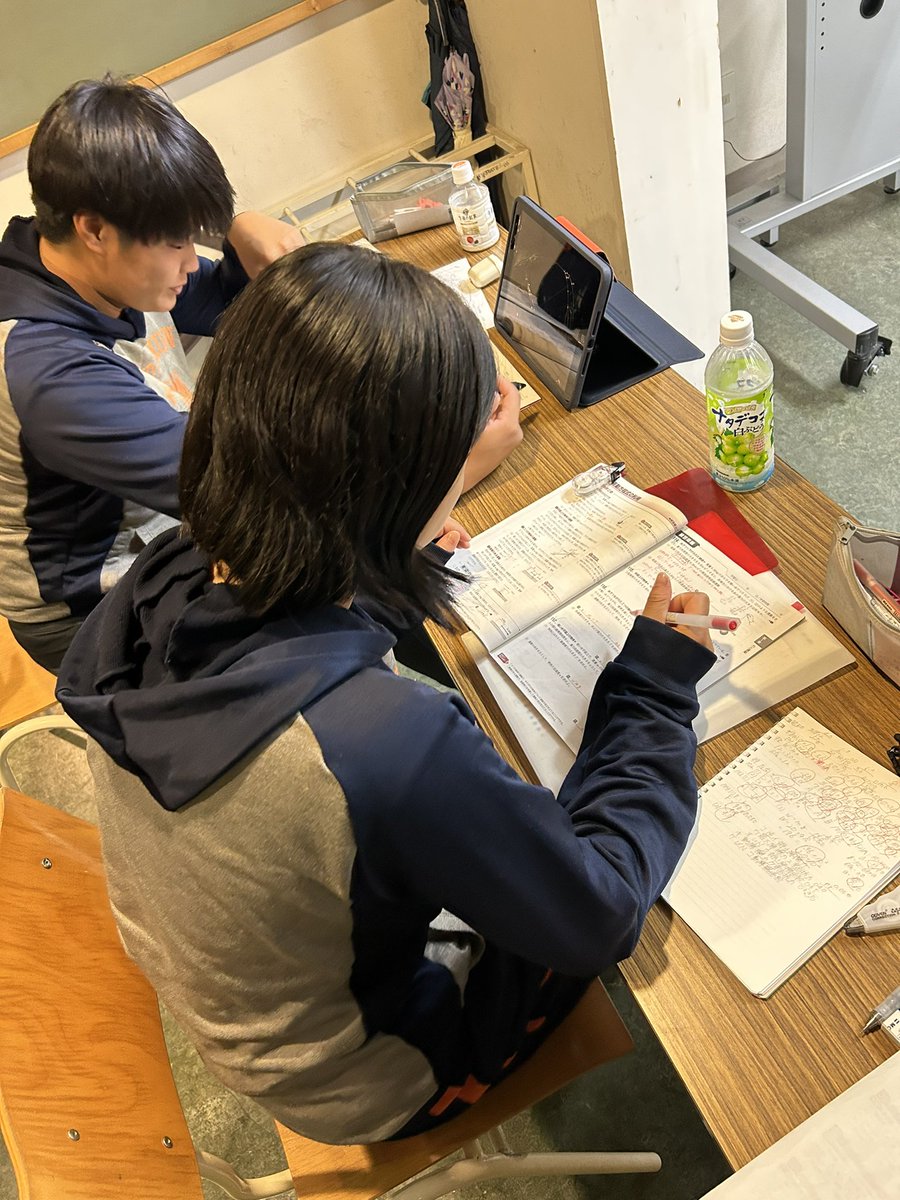 中間考査2週間前になりました✏︎ 皆んなで夜勉強中です👩🏻🏫 テスト順位でも競いあっているようで、勉強にも手を抜かず取り組んでくれていて嬉しく思います!! 前回は1年関谷、3年村田が学年1位でした✨ 今回は誰が学年1位をとるのか!?