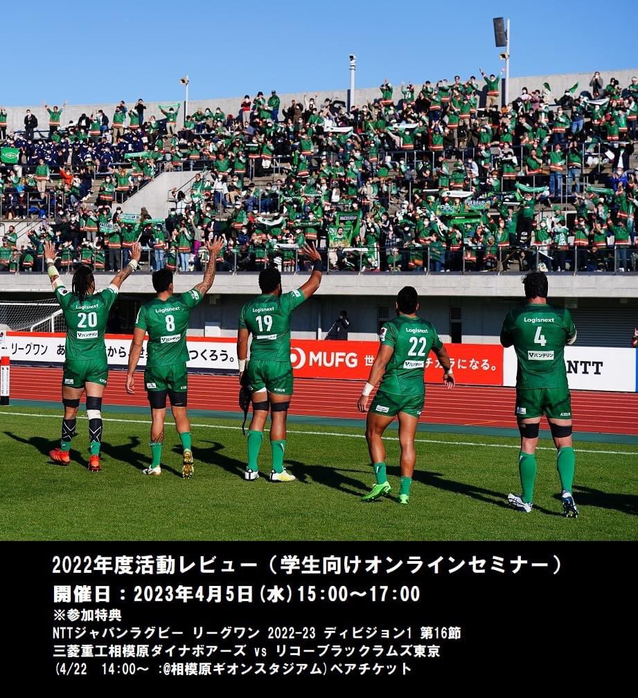 2022年度活動レビュー(#学生向けオンラインセミナー)開催のお知らせ✏️スポーツに興味・関心を持つ学生の皆様にレビューすることから自分たちの活動を見直し、同時に参加者の皆様にダイナボアーズの取り組み..