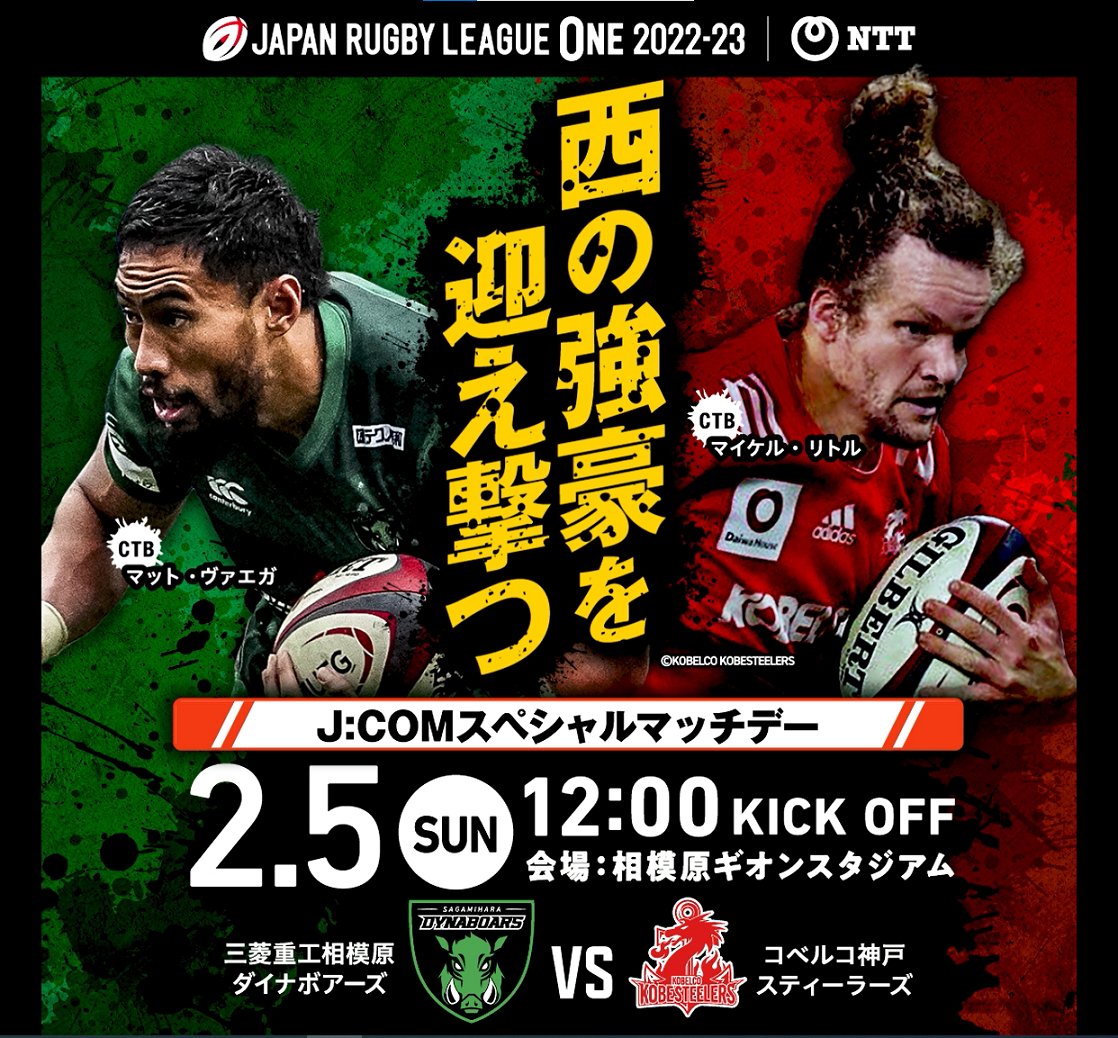 リーグワン第7節(VS#コベルコ神戸スティーラーズ)\\✨J:COMスペシャルマッチデー✨//2/5(日)相模原ギオンスでのリーグワン第7節はJ:COM様協力のもとホスト試合を開催します🏟️もちろん‼..