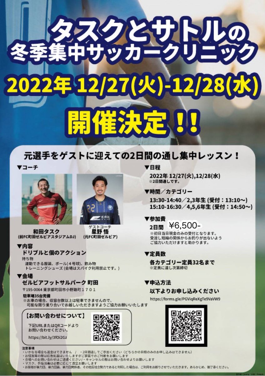【イベント情報】12月27・28日に冬季集中サッカークリニック開催前日となりました。まだまだ参加者の方を募集中です。元プロサッカー選手の直接指導を受けられるチャンスです!!中々ないこの機会に是非ご参加..