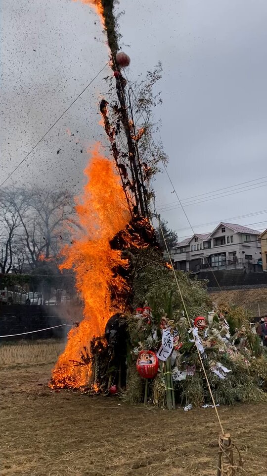 岡上川井田地区のどんど焼きに伺いました、 麻生区の納めどんど焼きとも言われています。 天候が心配されましたが、辰年らしく、龍のような煙が恵方に向かって立ち上がりました。 #麻生区 #どんど焼き #岡上