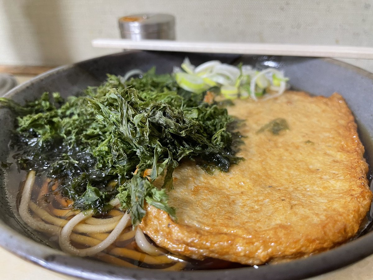 今日のお昼は#相州屋関内本店にて、愛媛県特産の#じゃこ天蕎麦。どこかの誰かさんに#貧乏くさいと言われるのは癪なので、景気よく磯のりワカメを追加。なんともまあ豪勢なお昼ご飯となり、瀬戸内海の恵みに感謝感..