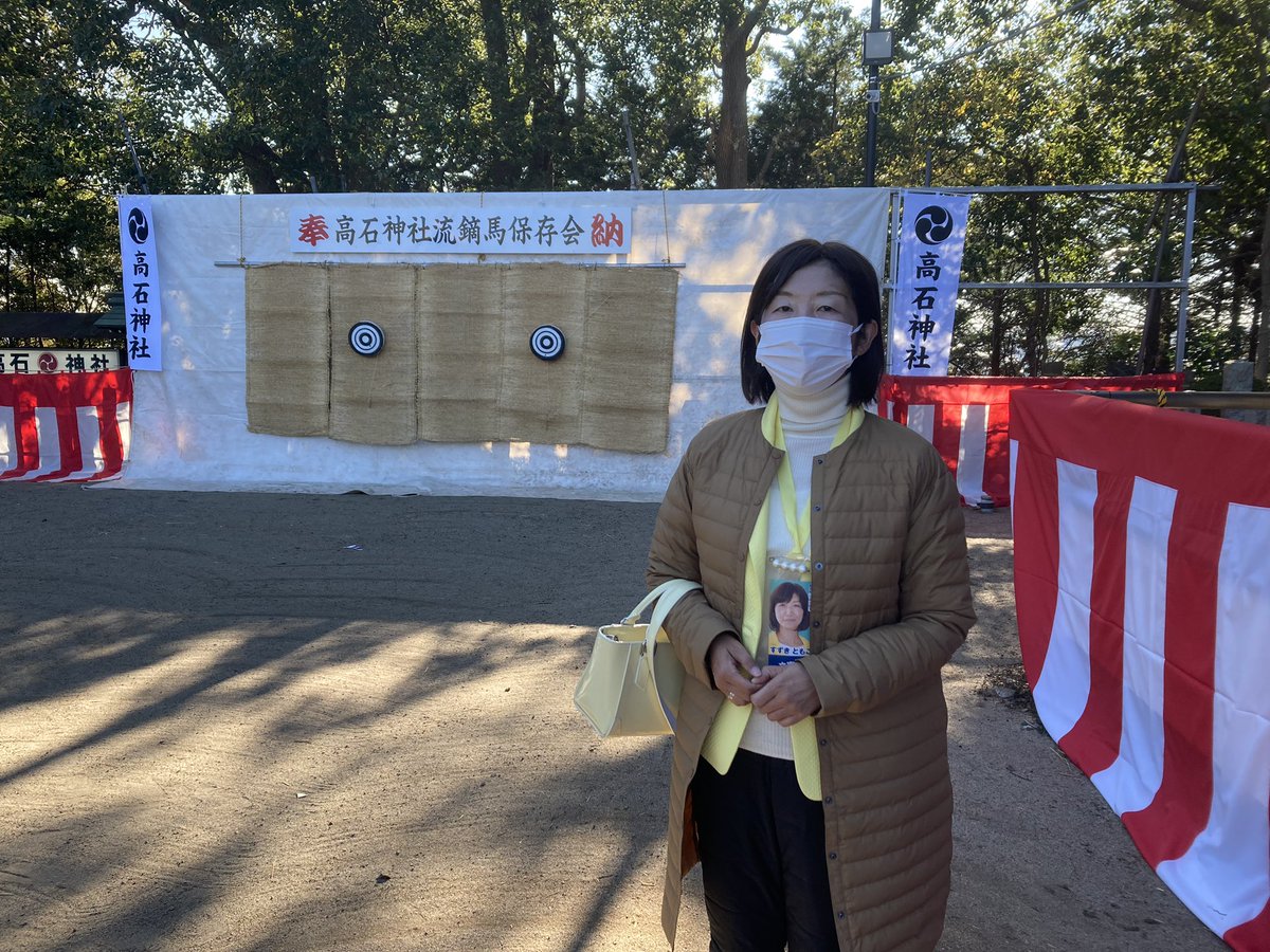 流鏑馬の的の前にて。笠議員の秘書さんにとっていただきました。ありがとうございます。#流鏑馬 #高石神社011