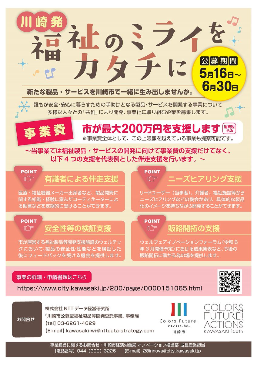 【6月30日(金)〆切】#市制100周年 に向けた取組として、#福祉製品 等の開発について、介護現場や当事者など、多様な立場の人々との「#共創」によって事業化に取り組む企業を新たに募集します(事業費200万円まで支援)。 事業の詳細や申請方法はこちら。