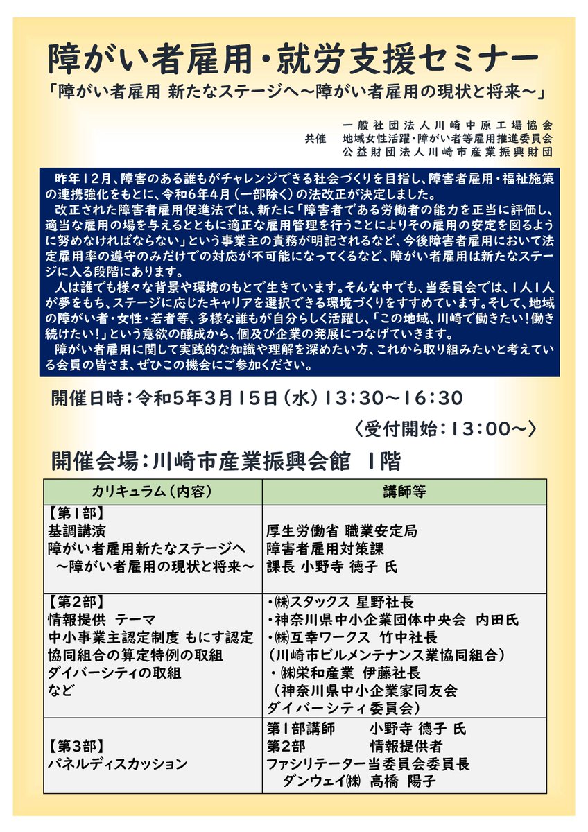 【3/15(水)開催!#障がい者雇用・就労支援セミナー障がい者雇用 新たなステージへ~障がい者雇用の現状と将来~】障がい者雇用に関して実践的な知識や理解を深めたい方、これから取り組みたいと考えている方..