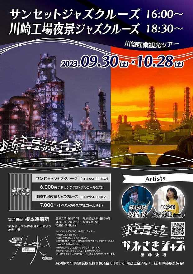 朝晩は涼しくなり夜風が心地よい季節人気の#工場夜景を眺めながら#JAZZの音色に身を委ねてみませんか?🎺かわさきジャズファクトリークルーズ🚢1ドリンク付き/アルコール含む🗓️10/28㈯🌇サンセットク..
