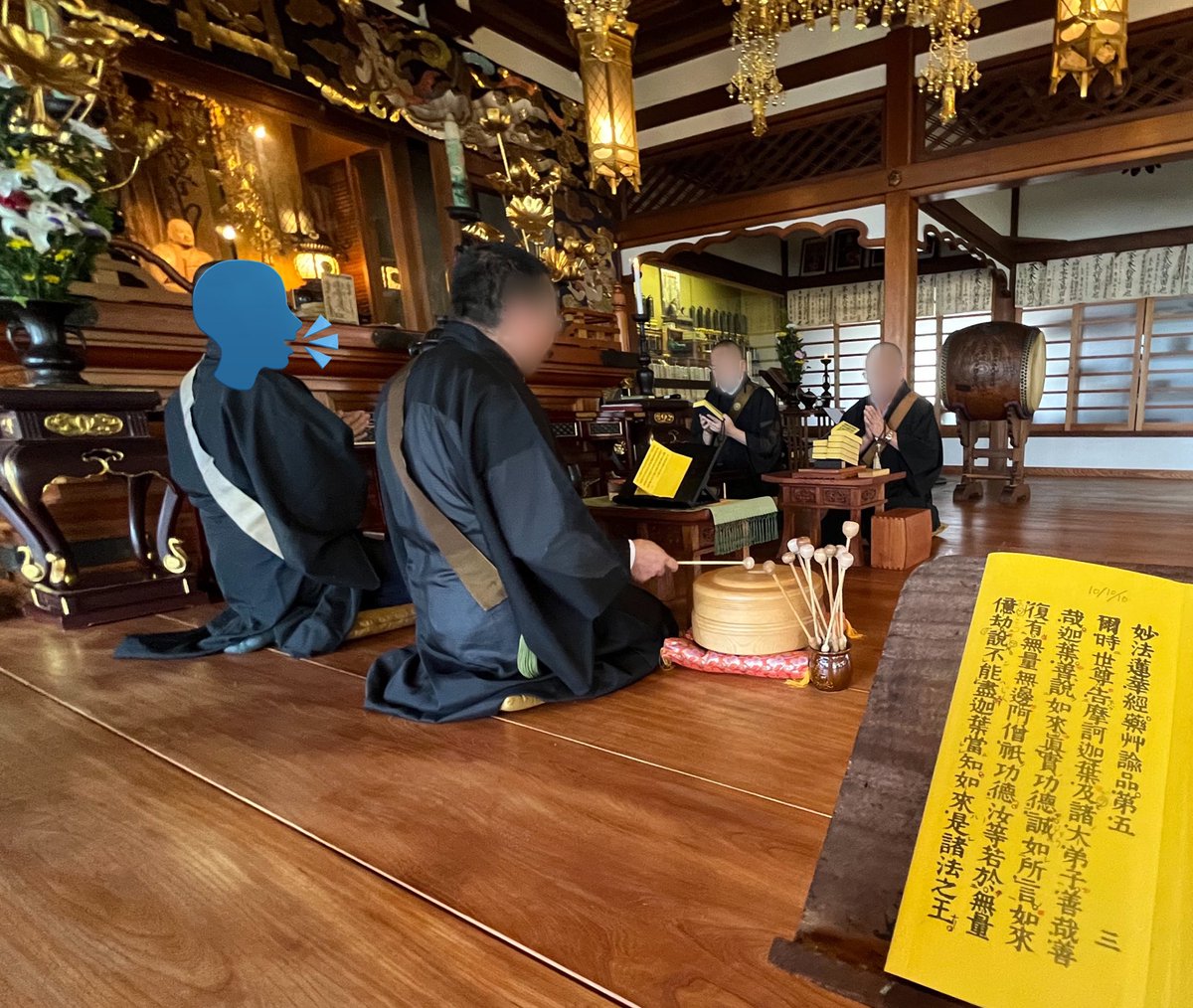 今日は一部経読誦会でした。 集まったお坊さん方と、3の巻、4の巻、総要品をお唱えしました。